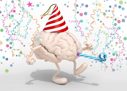 78366744 – brain with arms, legs, party cap and blowers © fabioberti.it- Fotolia.com